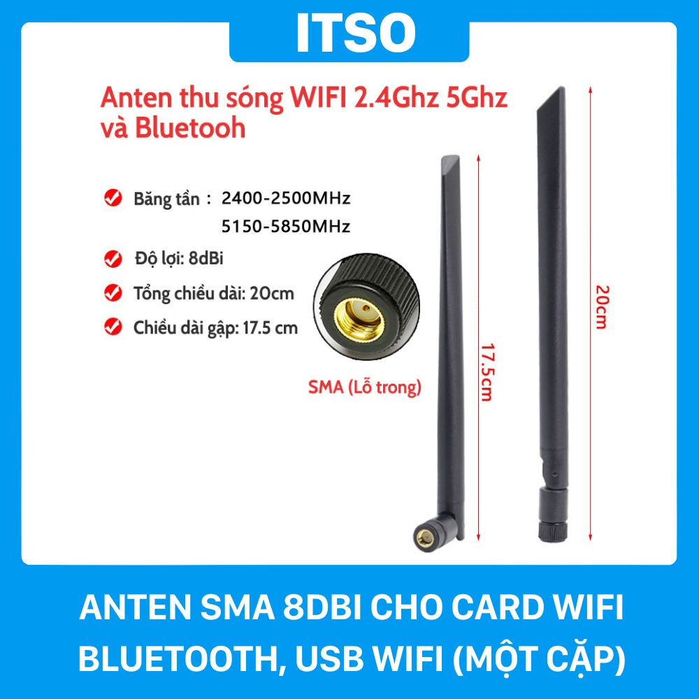 - Anten sử dụng cho card WIFI, sử dụng thu WIFI (2.4Ghz, 5Ghz, 6Ghz) . Bluetooth,..