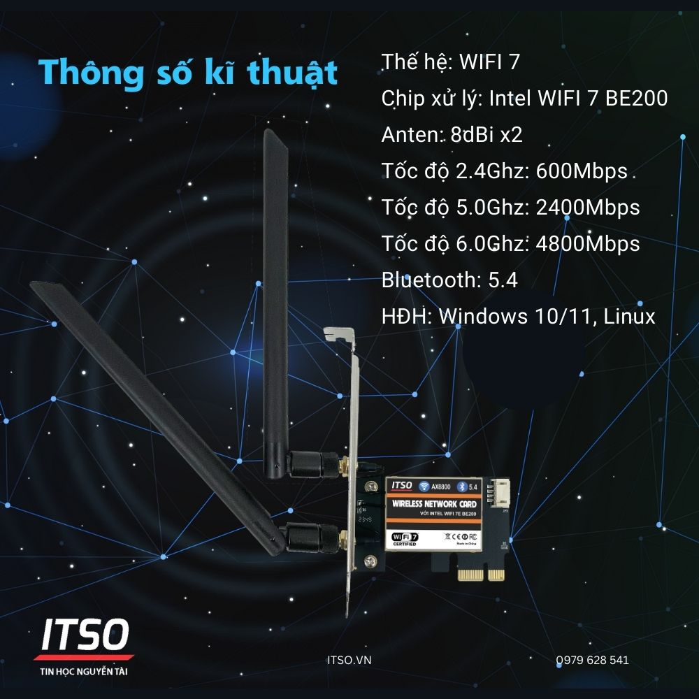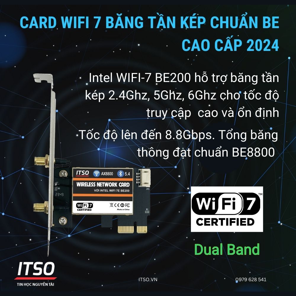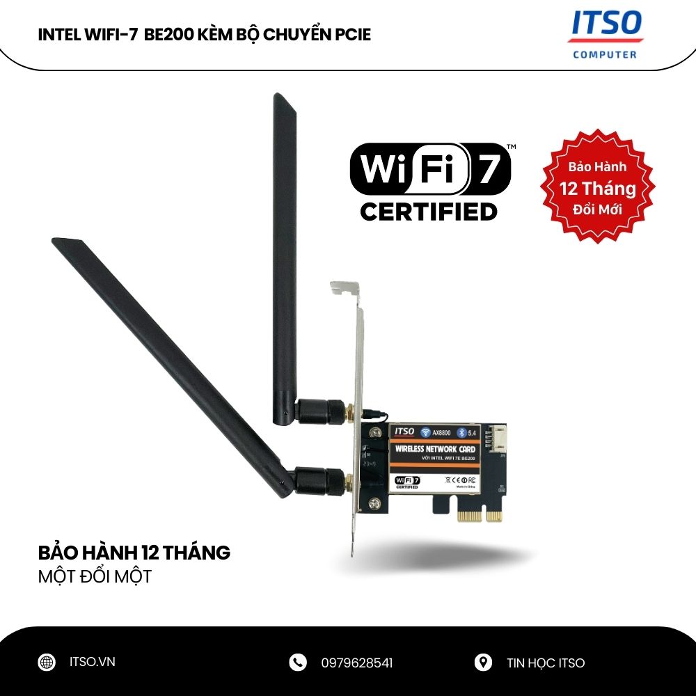 – Dòng sản phẩm card WIFI PCIe sử dụng chipset Intel WIFI 7 BE200 cao cấp nhất ở hiện tại, cho hiệu suất chơi game xuất sắc