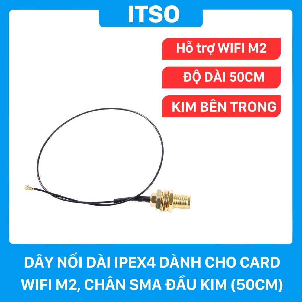 Dây nối dài IPEX4 dành cho card WIFI M2, chân cắm SMA đầu kim dài 50cm